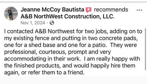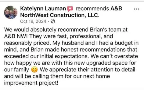 See what our clients have to say about their experience with A&B Northwest Construction and the quality we deliver on every project.